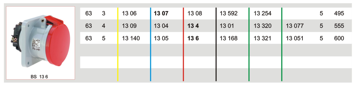 霸士BALS德國暗裝插座直插式BS 13 6 5P/63A/400V/IP44 |