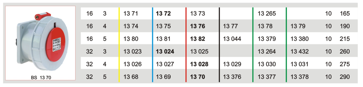霸士BALS德國暗裝插座直插式BS 13 70 5P/32A/400V/IP67 |