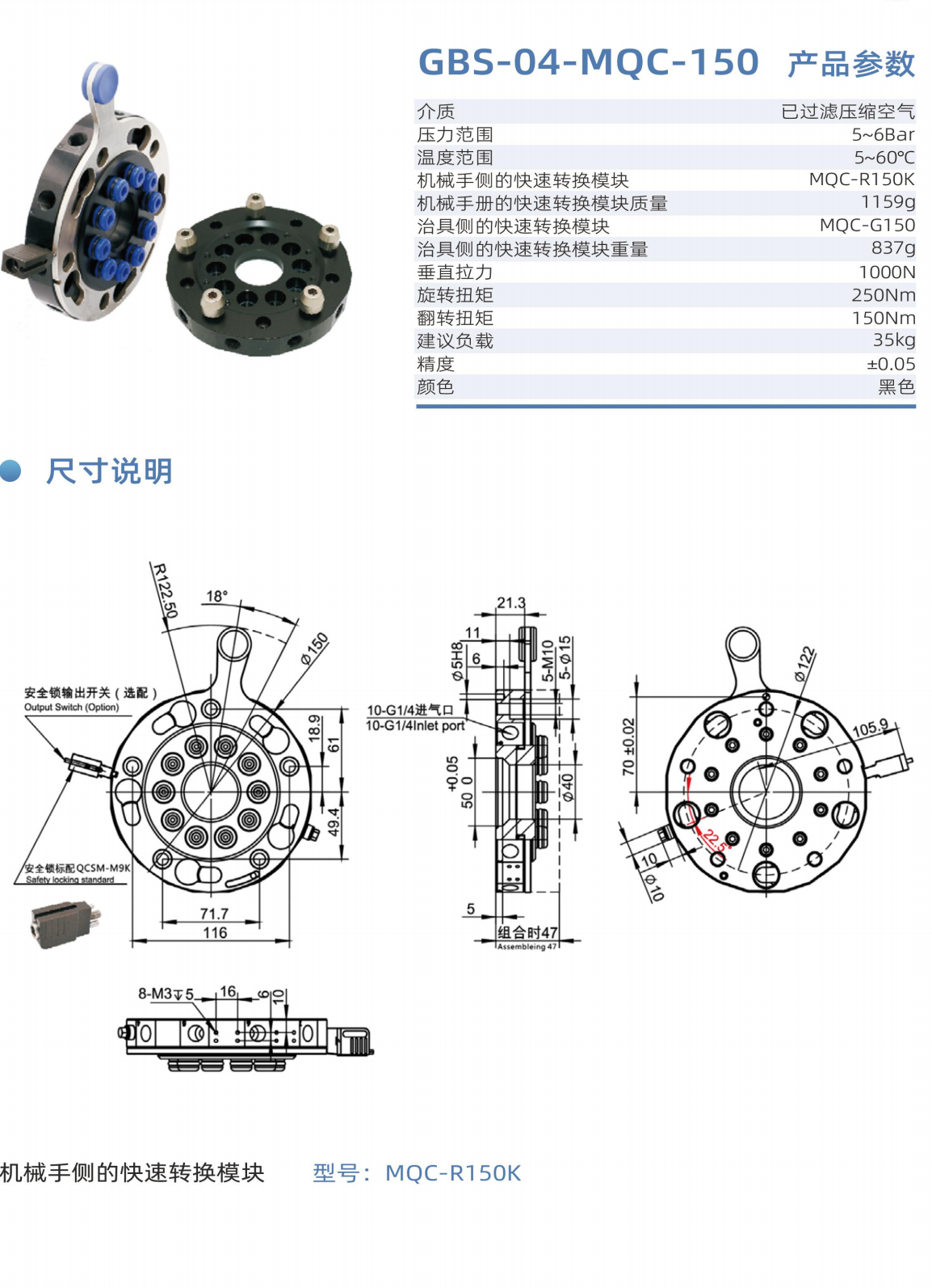 機器人快換裝置|工博士|GBS-04-MQC-150|圓形手動快換盤 |