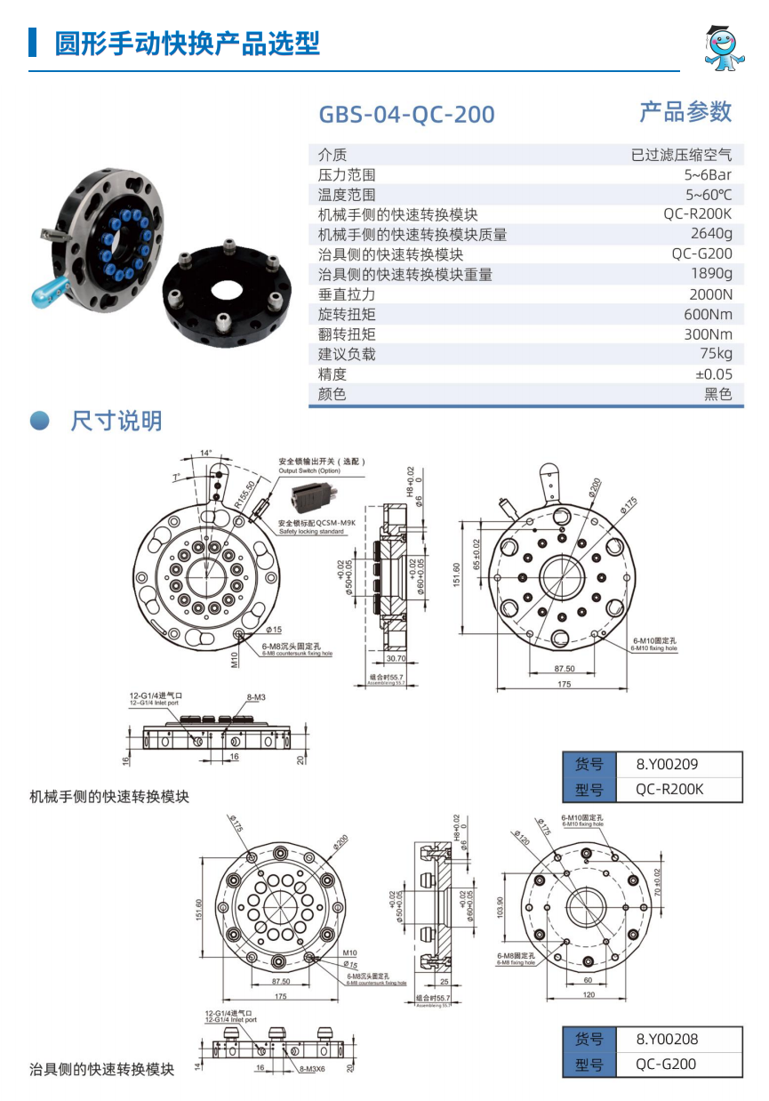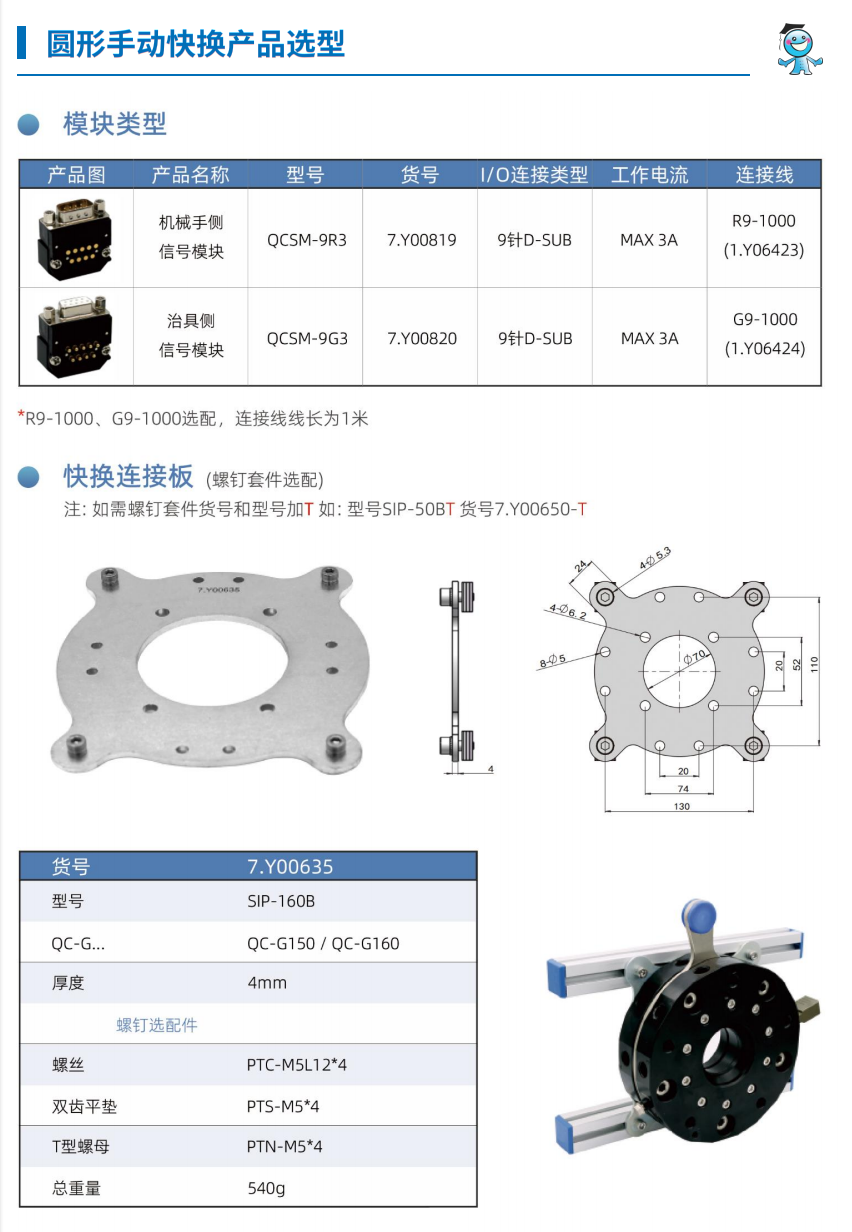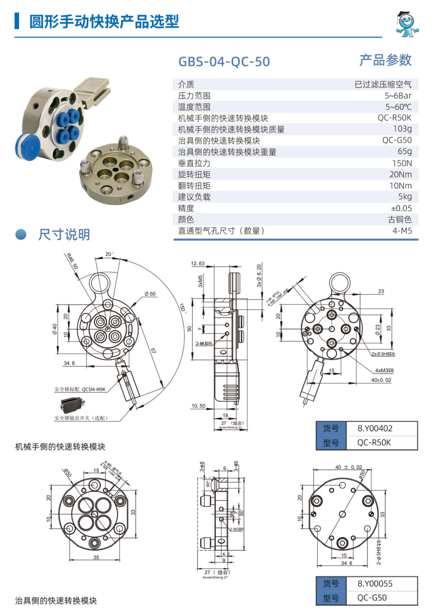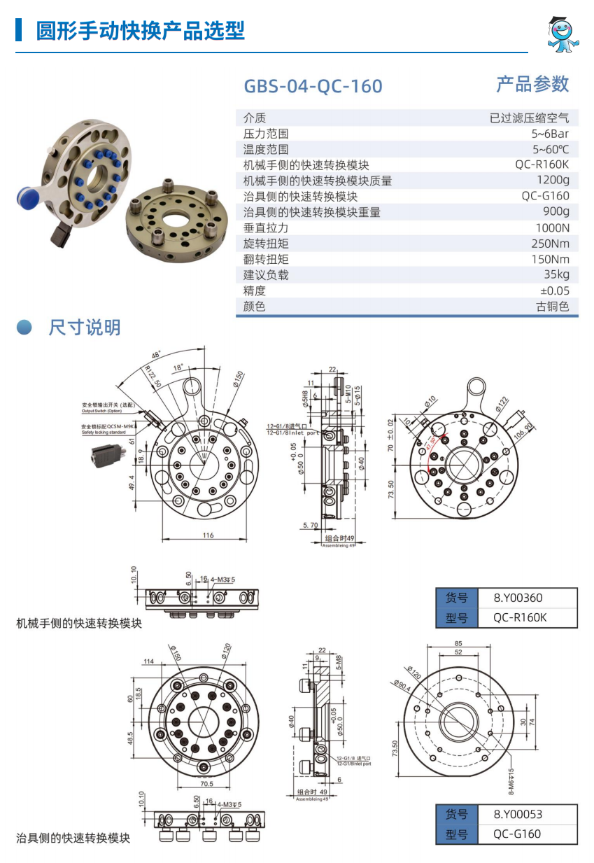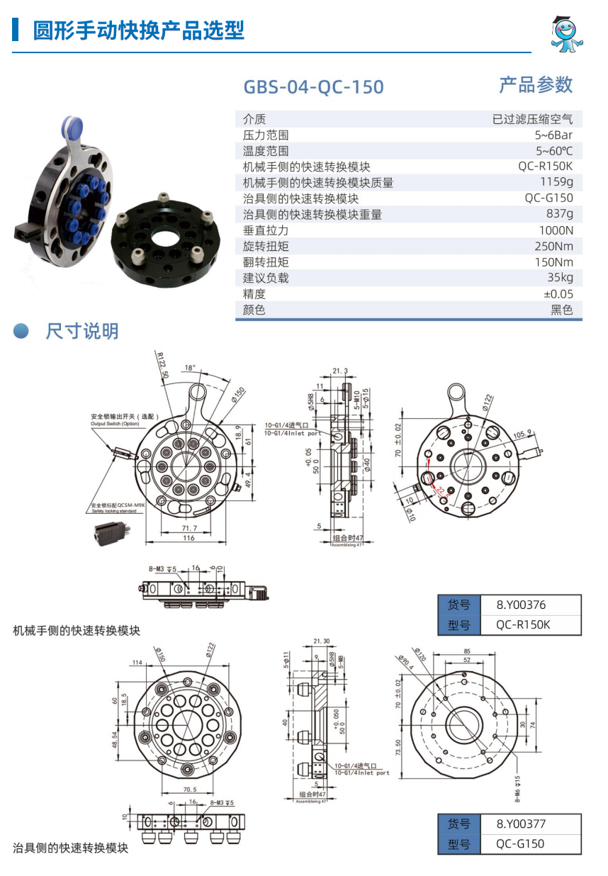 工博士機器人圓形手動快換裝置GBS-04-QC-90 負載15KG |