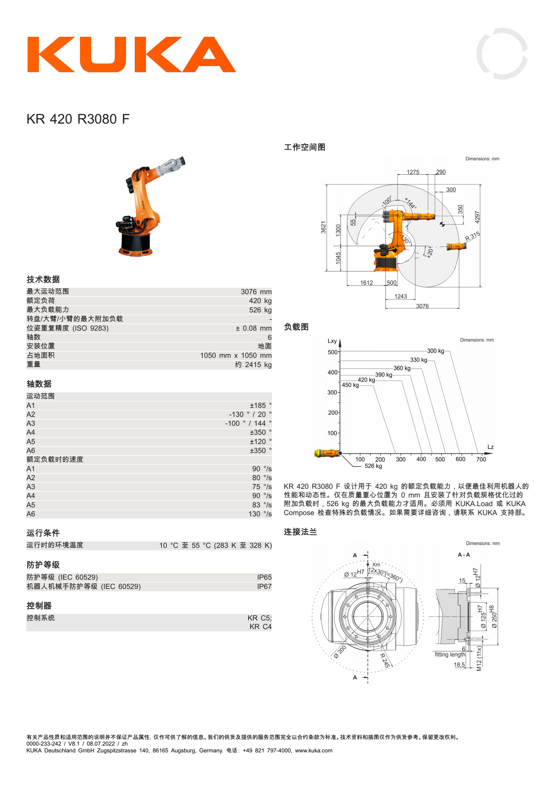 KR 420 R3080 F KUKA庫卡機器人重載級銑削
