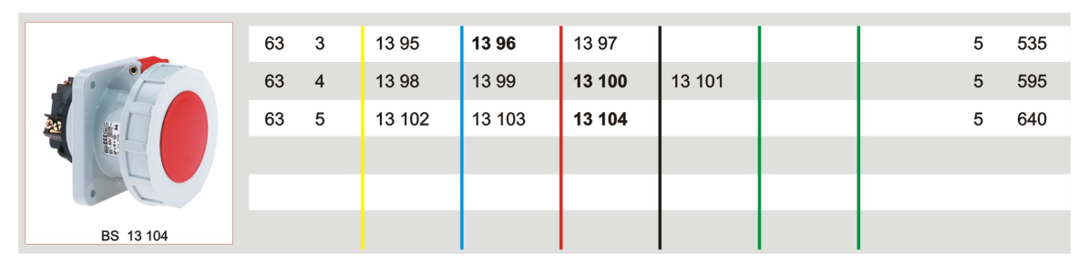 霸士BALS德國暗裝插座直插式BS 13 104 5P/63A/400V/IP67 |