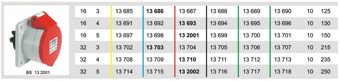 霸士BALS德國暗裝插座直插式BS 13 2001 5P/16A/400V/IP44 |