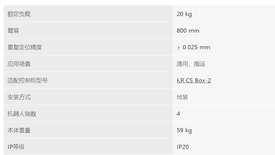 庫卡SCARA機器人KR 20 R1000 Z450 CS額定負載20 kg臂展800 mm
