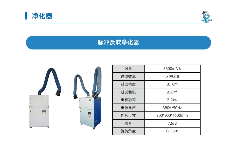 工博士機器人脈沖反吹凈化器 風量 3600m3/h,外形尺寸 800*900*1600mm |