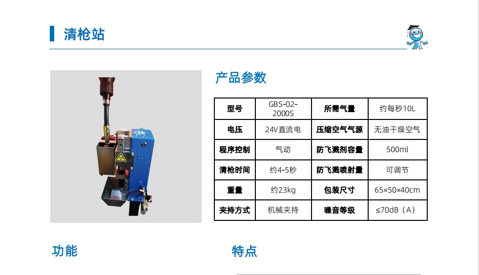 工博士機(jī)器人清槍站GBS-02-2000S 所需氣量 約每秒10L 重量 約23kg |