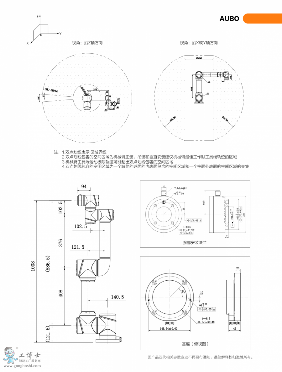 - 臂展為1008mm,可滿足工作范圍在886.5mm以內的作業任務