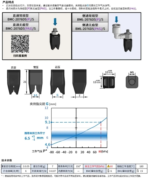 柔觸夾爪:BMC-2076D5[P]/S,建議負載(0-7g) |