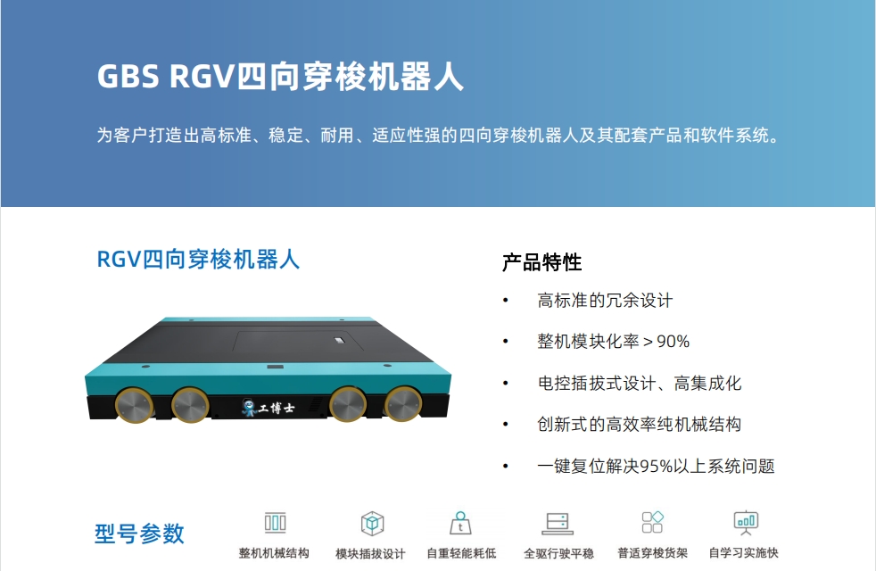 工博士RGV四向穿梭機(jī)器人 超窄型GBS-W850 額定載荷1600kg 速度0.8~2.0m/s
