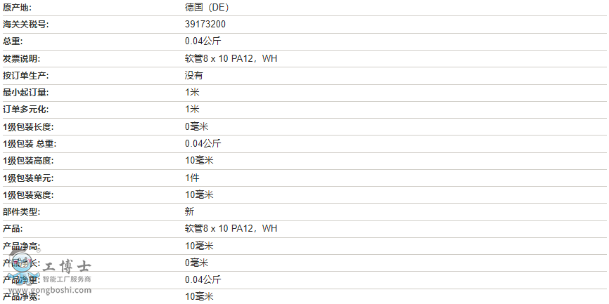 ABB工業(yè)機器人配件 3HNA002918-001 軟管 HOSE 8 x 10 PA12, WH