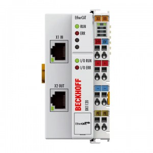 BK1120 EtherCAT 耦合器用于連接 EtherCAT 現場總線協議與總線端子模塊。耦合器可將以太網 100BASE-TX 的傳遞報文轉換為內置的、獨立于現場總線的端子模塊總線。一個站點由一個耦合器、***多 64 個總線端子模塊和一個總線末端端子模塊組成。EtherCAT 系統的過程映像自動分配 。通過 K-bus 擴展,***多可連接 255 個總線端子模塊。