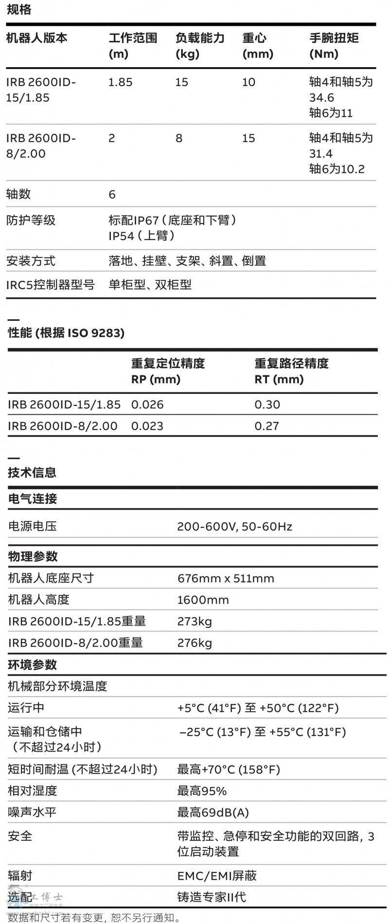 IRB2600ID-8/2.00 負載8KG,臂展2000mm,ABB焊接專用機器人 |