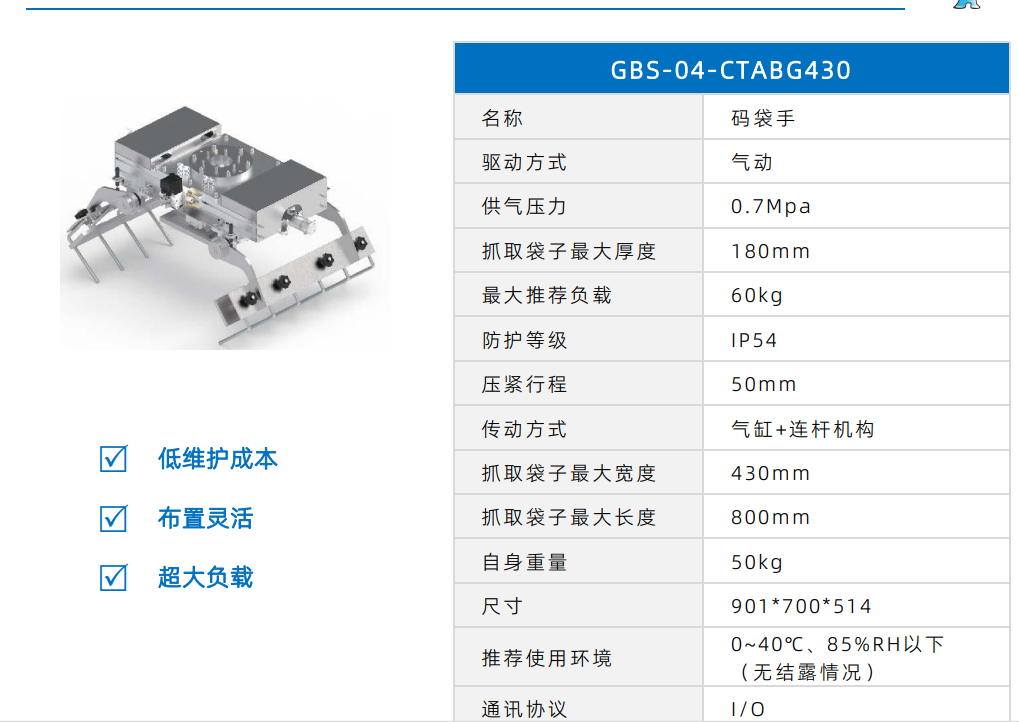 機器人生產廠家 配件 GBS-04-CTABG430碼袋手
