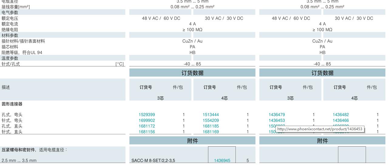 您。另外還可以根據客戶需求開發定制產品。菲尼克斯信號、菲尼克斯編碼器、菲尼克斯混合和電源連接器M17到M58連接器系列產品包括所有常用的工業信號、混合型和插拔式電源連接器,電壓和電流可達630 V/150 A。此外,該系列產品還符合所有相關的密封