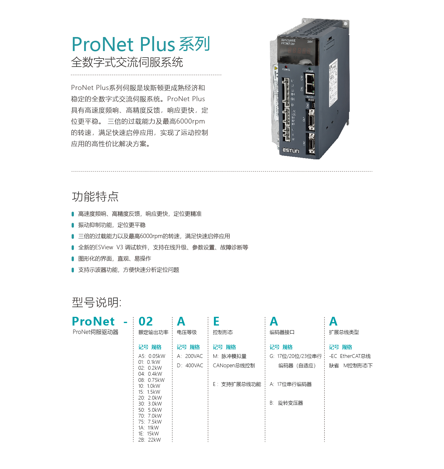 埃斯頓 ProNet Plus系列 全數(shù)字交流伺服系統(tǒng)