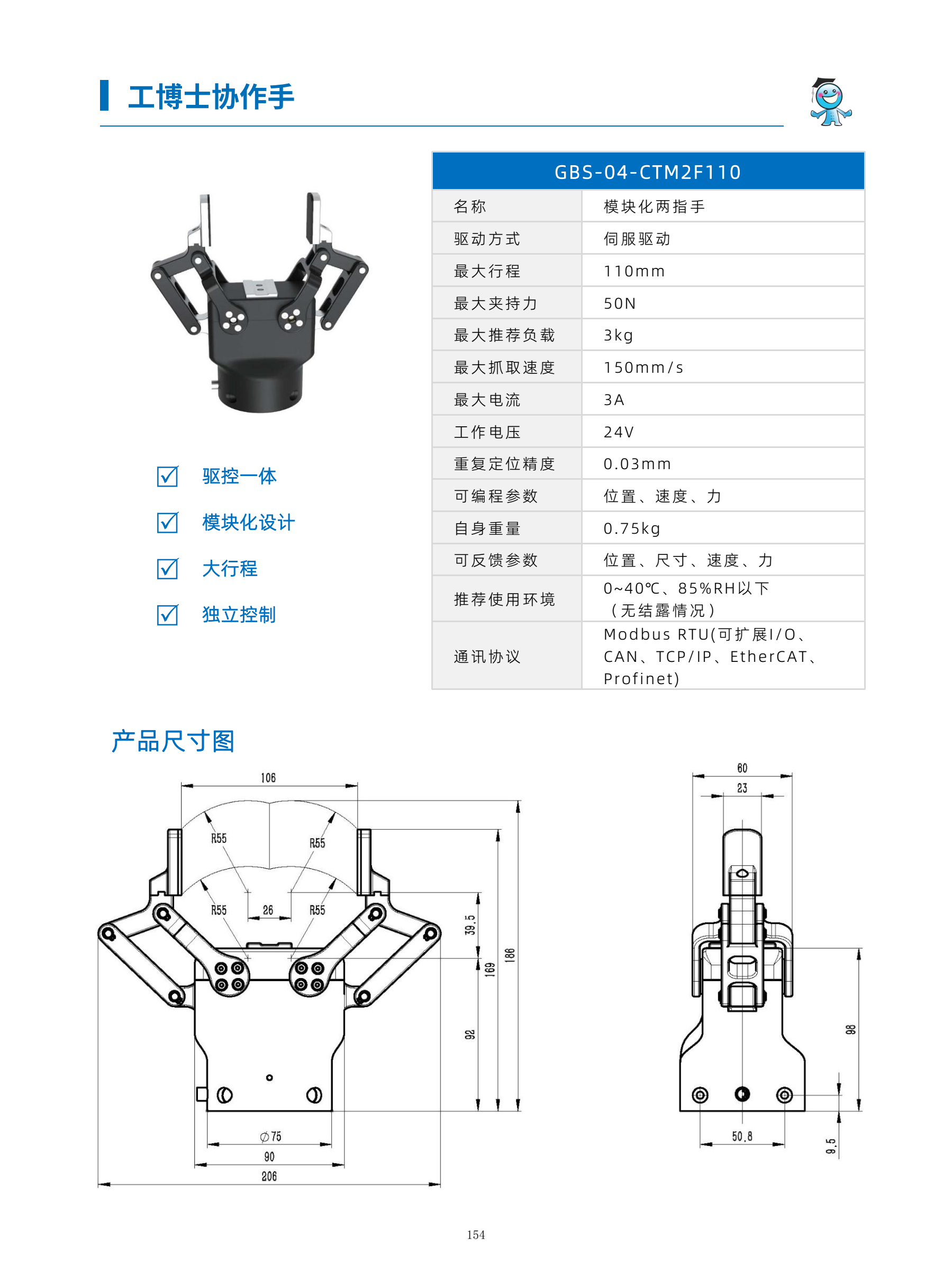 工博士協作手 GBS-04-CTM2F110 模塊化兩指手 |