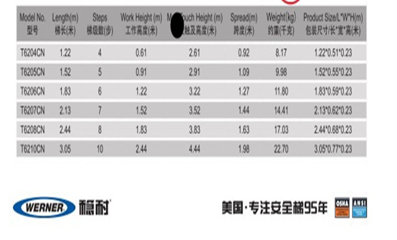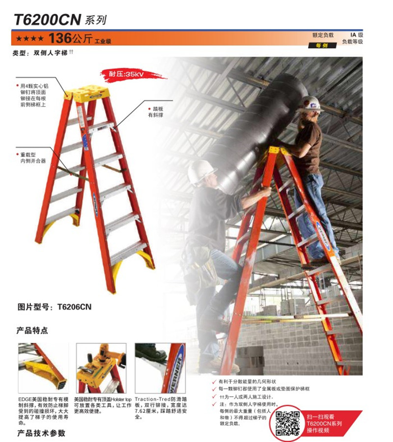 T6210CN美國穩耐(werner)玻璃鋼平臺工業級人字梯