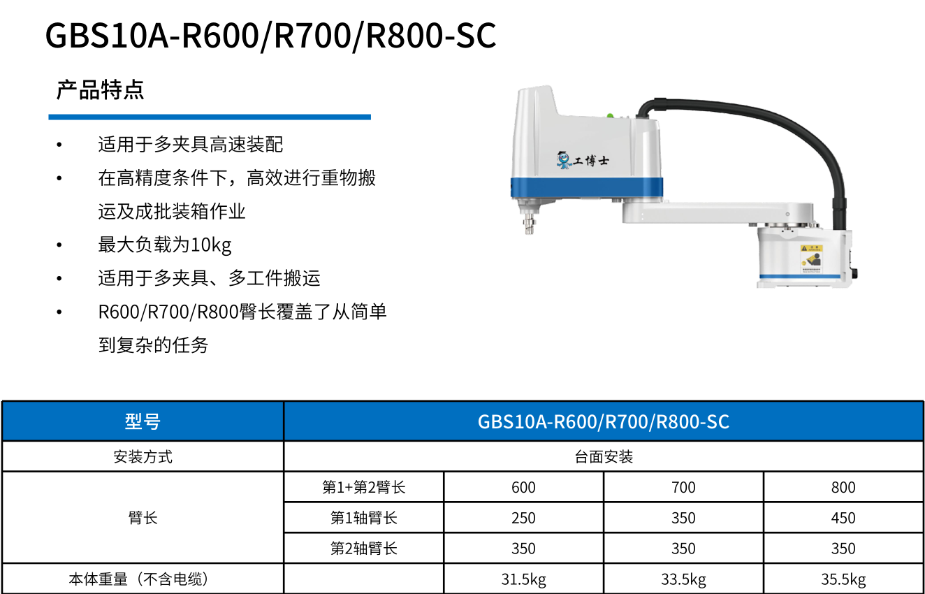 工博士SCARA機器人GBS10A-R600/R700/R800-SC----工博士機器人