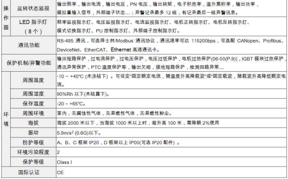 10. 支持標(biāo)準(zhǔn)Modbus、Canopen(從站)、Profibus、Devicenet、EtherCAT、Ethernet通訊機(jī)能