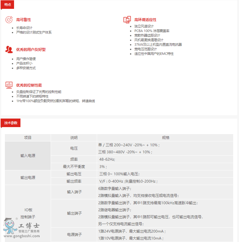 HLP-SJ110系列變頻器是基于A100平臺開發的針對中等強度負載的通用多功能型變頻器。過載能力135% 額定輸出電流1min, 180% 額定輸出電流1s。 典型應用: 空調機、塑機