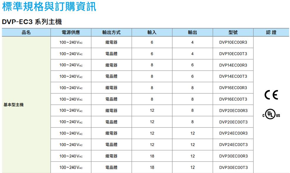 臺達PLC DVP-EC3針對***經濟的順序控制流程與通訊監控方案,提供一個單機獨立運作的應用產品,達到用戶standalone的監控如光電開關、近接開關、光學傳感器、指示燈和照明開關等,以及透過串行埠有效的連接PLC、變頻器、溫控器等控制組件,有效的滿足需考慮成本又兼顧可靠度及可程序規劃的電控解決方案。