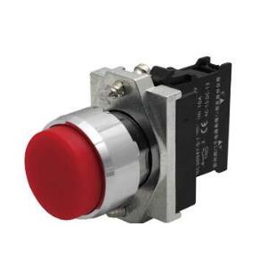 全套裝置組合 22 mm 金屬光澤圓形 按鈕 瞬時 凸起按鈕) 帶支架 螺絲端子,1 個常閉觸點 紅色