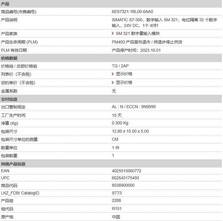 西門子 數字輸入模塊 SM 321 6ES7321-1BL00-0AA0