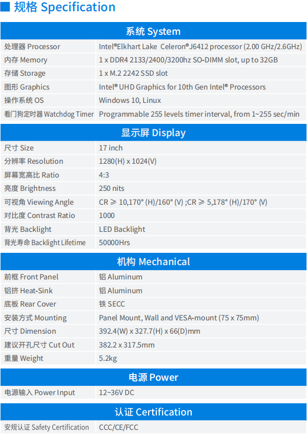 工業平板電腦CEP系列>17寸>CEP-17RS-J64A