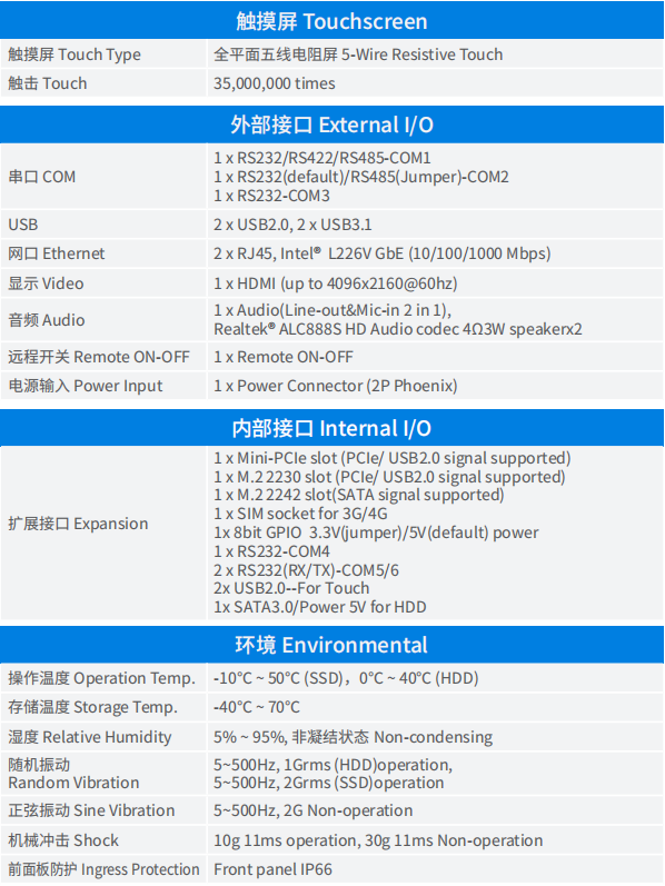 2、17寸 LED背光顯示屏,前面框支持IP66防護等級