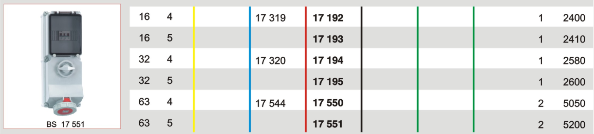 德國BALS霸士帶開關,聯(lián)鎖明裝插座BS 17551 5P/63A/400V/IP67 |