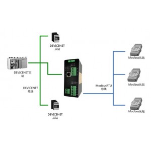 本網關實現MODBUS RTU轉DeviceNet功能,能夠實現Modbus RTU接口儀表、變頻器、綜保、軟啟動器等設備接入到DeviceNet的PLC或者DeviceNet網絡系統。網關在MODBUS RTU 一側支持主站或從站,在串口一側物理接口有RS-485或RS-232兩種,支持DeviceNet從站。