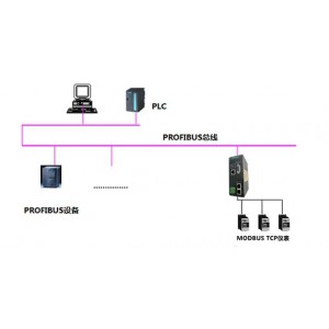 本網關實現Modbus TCP轉Profibus DP功能,能夠實現Modbus TCP的設備如儀表、變頻器、伺服、綜保、軟啟動器等設備接入到S7-300等ProfibusDP網絡系統。