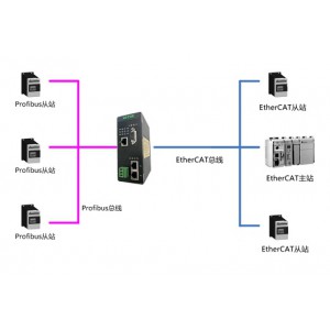 本網(wǎng)關(guān)實(shí)現(xiàn)ProfibusDP主站轉(zhuǎn)EtherCAT協(xié)議功能,能夠?qū)崿F(xiàn)ProfibusDP設(shè)備如儀表、變頻器、伺服、綜保、軟啟動(dòng)器等可以連接到倍福、歐姆龍、基恩士等廠家PLC的EtherCAT網(wǎng)絡(luò)系統(tǒng)。