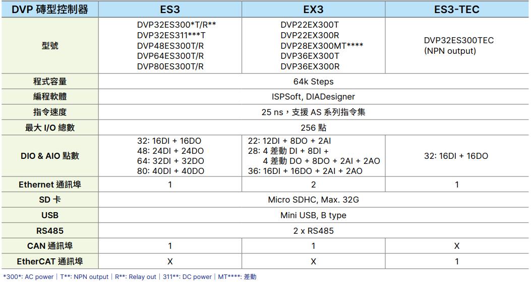 臺達PLC 第三代標準/EtherCAT/模擬混合磚型控制器 DVP-ES3 / ES3-TEC / EX3