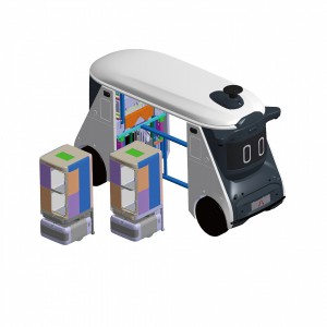 ● 可自主搭載多品類定制室內機器人及原子貨柜,并配套碼上到零售業務管理系統,可自動、準時、準確實現快遞/外賣配送上樓、垃圾自動清運等跨樓棟服務