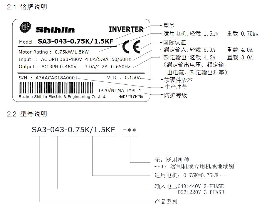 士林變頻器 SA3雙額定高性能向量型變頻器 特色說明: