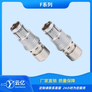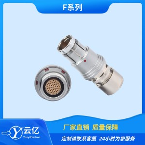 F系列微圓形高密度連接器為分瓣式推入拉出式結構,插合后具有自鎖功能,內部采用半園定位片防止誤 插,另有其行生T系列和C系列,分別有定位銷定位片多 方定位系統,防止相同芯數上的錯誤插拔,同時還具備 盲插功能,使用起來方便快捷。 該系列連接器具有快速插拔、高密度、防水、小體積、盲插及壽命高等特點。特別適合于高密度安裝、相對狹小的空間安裝及使用旋轉方式插合分離困難的場所。能應用于野外惡劣環境,防護等級1P68。 該連接器被廣泛應用于軍、民領域的電臺設備、醫療設備測試設備、音響設備、數據采集、工業控制、航空航天等場合的直流交流電路的電氣連接。