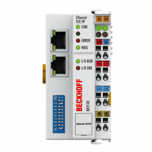 總線耦合器可識別所連接的終端,并自動將輸入和輸出分配給過程映像的字。BK9100 總線耦合器支持 10 Mbit/s 和 100 Mbit/s 以太網。連接通過普通 RJ45 連接器進行。IP 地址在 DIP 開關上設置(偏移到可自由選擇的起始地址)。在具有 DHCP(將邏輯 IP 地址分配給物理節點地址 [MAC-ID] 的服務)的網絡中,總線耦合器從 DHCP 服務器獲取其 IP 地址。