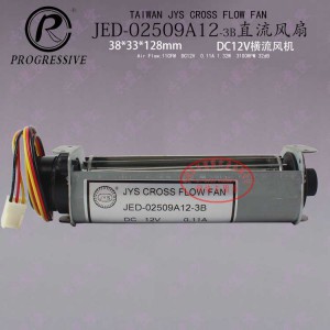 臺灣金億翔JYS貫流風機JED-02509A12-3B,3100轉超高轉速超大風量,雙滾珠軸承,扇葉直徑為25mm的橫流風扇,DC12V,散熱長度為98mm,風機總長度(含電機)是129mm,家用電器等設備用貫流風機!