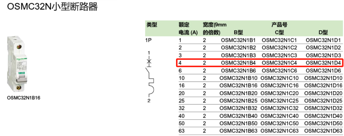 施耐德OSM系列微型斷路器OSMC32N-D4A/1P全新質量保證 OSMC32N1D4 |