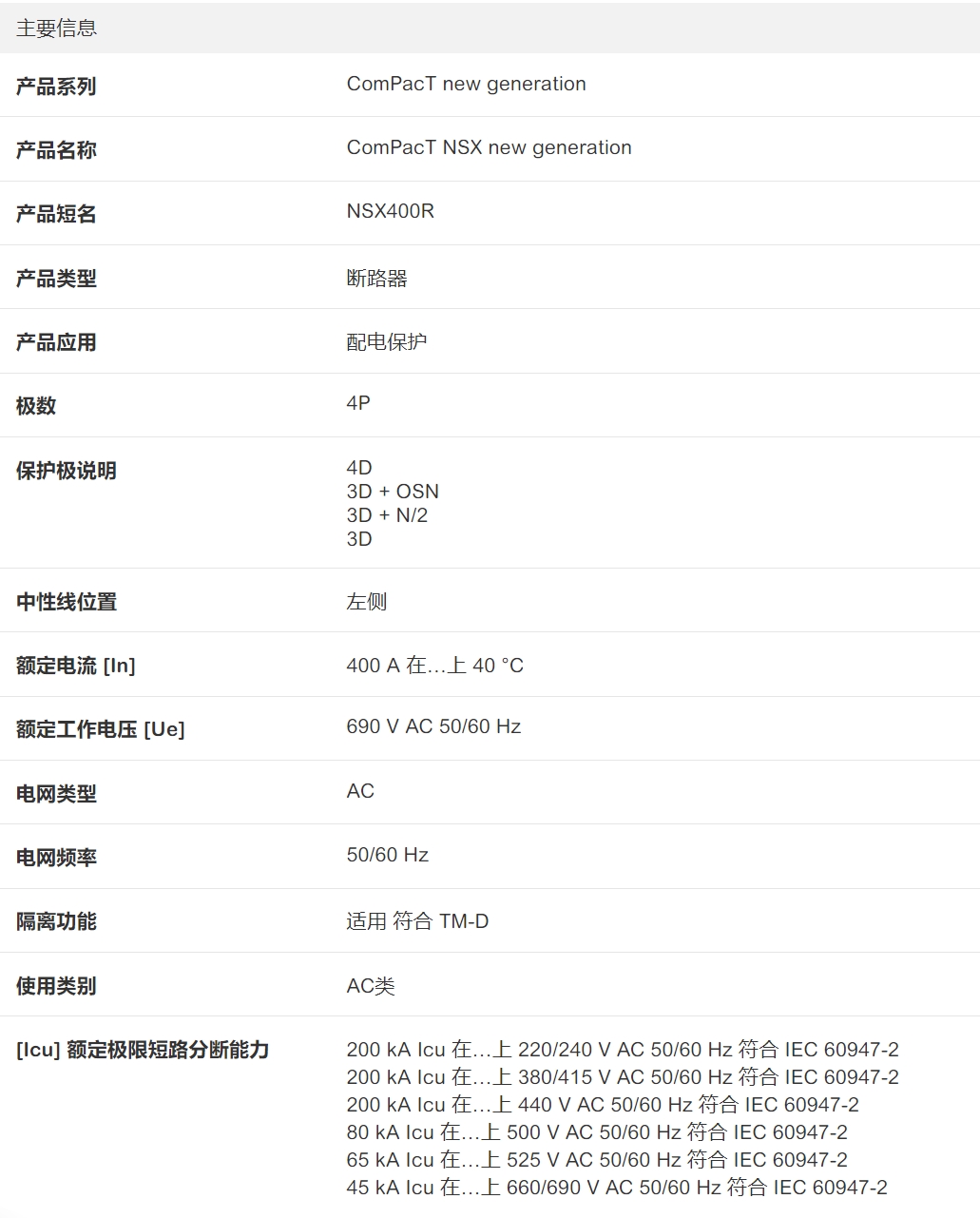 Schneider/施耐德電氣 NSX 固定式完整斷路器(新) |