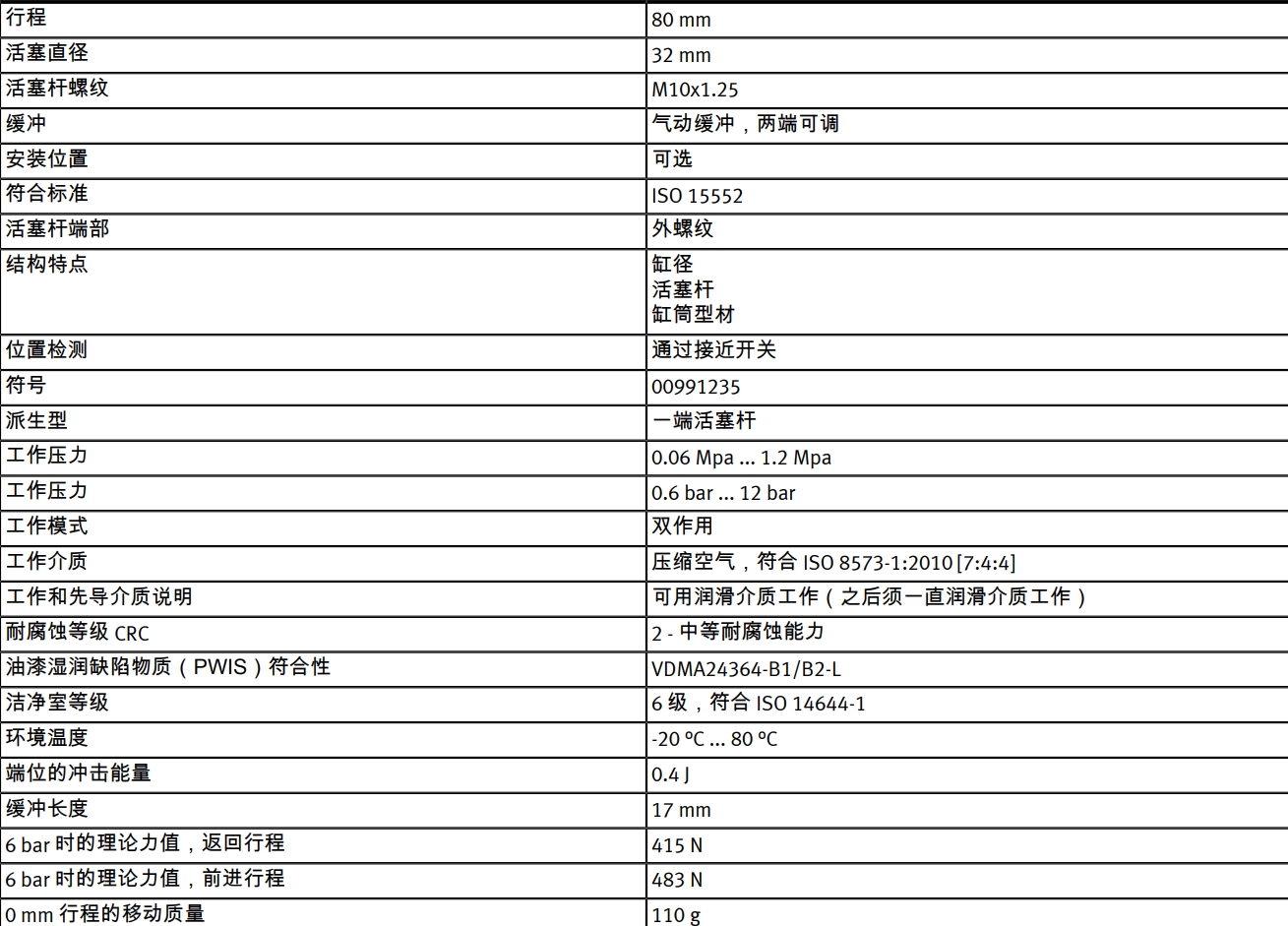 ISO 標準氣缸 DSBC-32-80-PPVA-N3 訂貨號:1376425