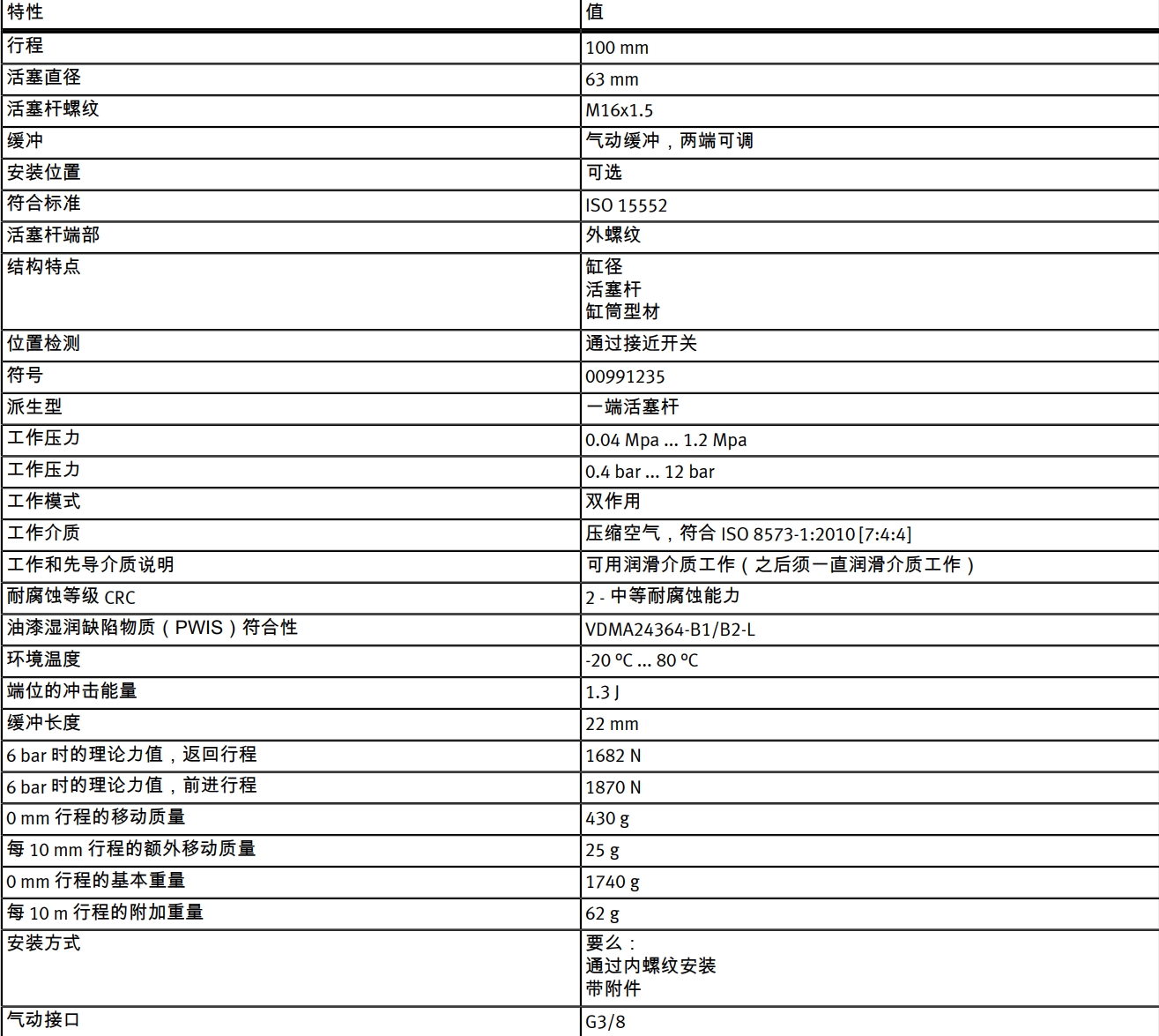 ISO 標準氣缸 DSBC-63-100-PPVA-N3 訂貨號:1383582