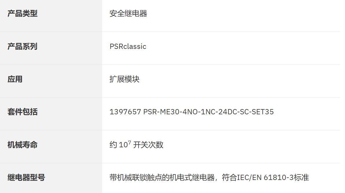 安全繼電器,用作觸點擴展模塊,4個啟用電流通路,1個確認電流路徑,與基本設備一起使用,符合EN ISO 13849標準的Cat.3類PLd級要求,插拔式螺釘連接端子,寬度:22.5mm