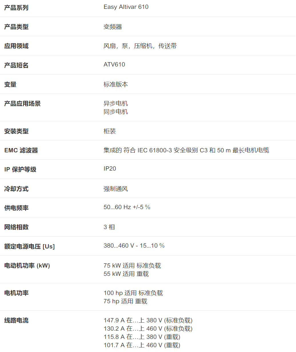 施耐德變頻器 ATV610D75N4 3相 CE標識 全新備貨 價格優勢 |