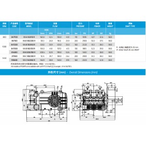 型號描述:VX-B 60/350 R 產(chǎn)品編號:83630000 流量:NOM 64.7L/min 17.1GPM 丨60.0L/min 15.9GPM 壓力:350bar 5075psi 功率:40.1kw 重量52.0kg 轉(zhuǎn)速:1000 泵軸:R-右輸入軸直徑為35mm