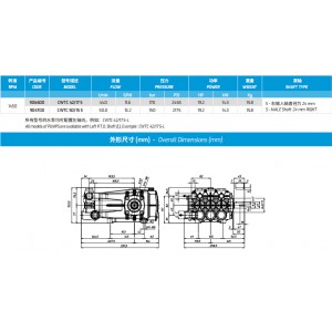 型號描述:CWTC 50/15S 產(chǎn)品編號:904700 流量:50.0L/min 13.2GPM 壓力:150bar 2175psi 功率:19.2HP 14.3kw 重量15.8kg 轉(zhuǎn)速:1450 右輸入軸直徑為24mm
