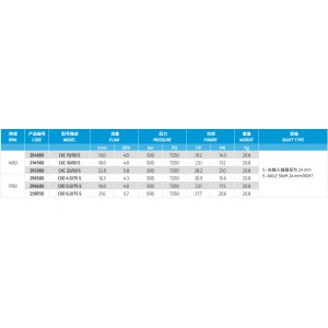 型號描述:CXC 22/50 S 產品編號:295000 流量:22.0L/min 5.8GPM 壓力:500bar 7250psi 功率:21.0kw 重量20.8kg 轉速:1450泵軸:R-右輸入軸直徑為24mm