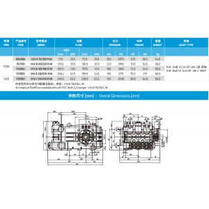 型號描述:VXX-B 160/180 R MI 產品編號:912800 流量:NOM 158.3L/min 41.8GPM 丨157.0L/min 41.5GPM 壓力:180bar 2610psi 功率:54.0kw 重量60.0kg 轉速:1000 泵軸:R MI-14齒 12/24 DP SAE C型 母軸