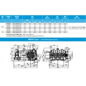 型號描述:NK-D 15.0/44R MI 產品編號:320400 流量:NOM 59.9L/min 15.8GPM 丨56.6L/min 14.9GPM 壓力:300bar 4350psi 功率:32.5kw 重量31.0kg 轉速:1750泵軸:R MI -13齒16/32DP SAE B型 母軸